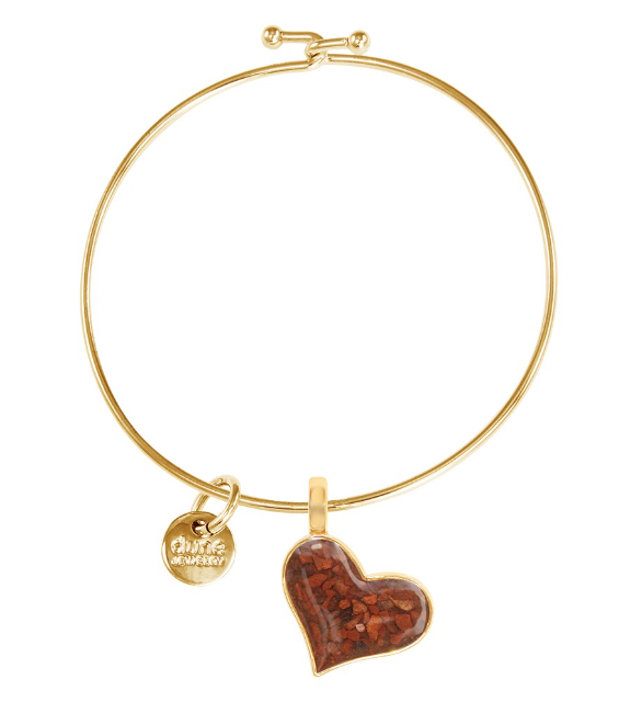Stack your favorite travels and experiences on your wrist with our Gold Heart Charm Beach Bangle This gold plated heart bangle is approximately 17mm in diameter and filled with Outer Banks sand, layered to a slightly domed, glass-like finish.